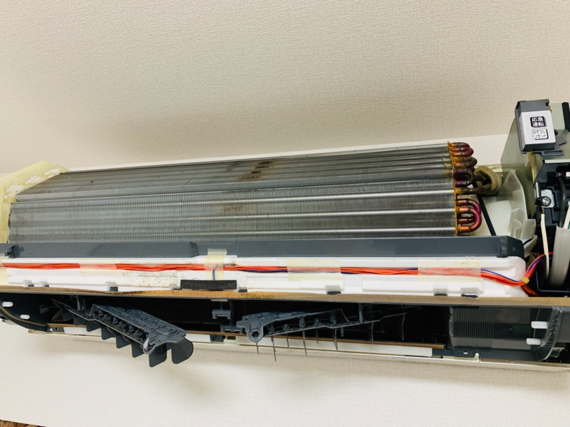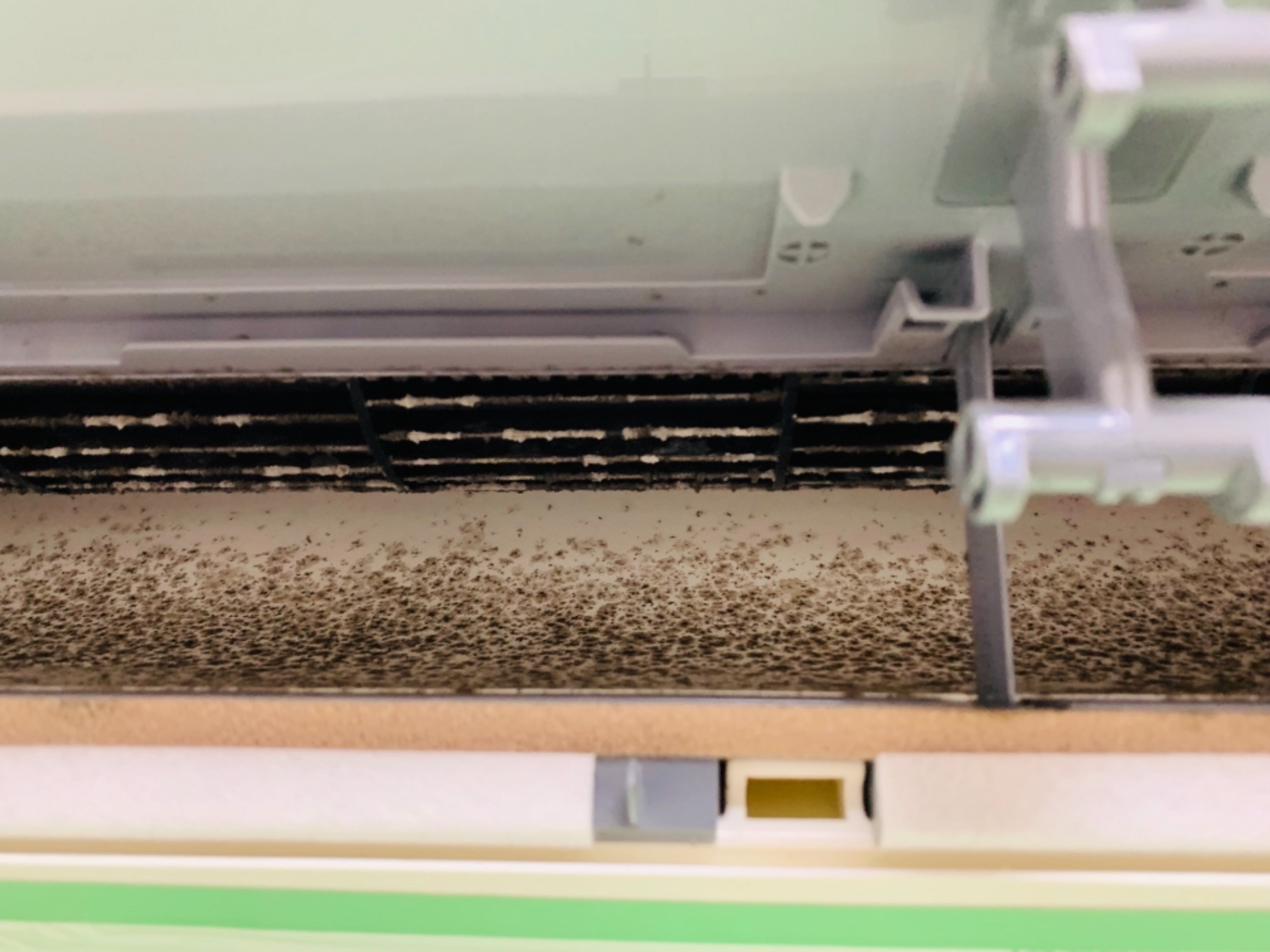佐倉市にて三菱霧ヶ峰のお掃除機能付きエアコンクリーニング 2020/05/15 本日は佐倉市にて三菱のお掃除機能付きエアコンMSZーW224のご依頼でした! カバーを外すとこの様な状態です。 クリーニングしやすい様に、お掃除ロボを外します♪ だいぶスッキリしますね 5年分のカビが溜まっていました? 天然の植物洗剤とオプションの防カビコーティングでスッキリ美味しい空気になりました?